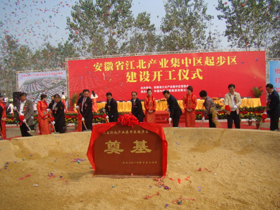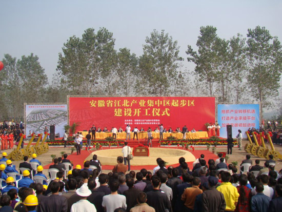 中安在线讯 10月16日,安徽省江北产业集中区举行仪式隆重庆祝集中区起步区开工建设。“路网工程”、“首期拆迁安置房”两个项目的如期开工,标志着集中区建设全面拉开帷幕。省委常委、常务副省长孙志刚,省人大常委会副主任朱维芳出席开工仪式。