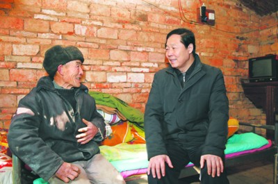 接着,张宝顺来到苗集镇敬老院看望五保老人。院子里,阳光洒满一地,老人们晒着太阳有说有笑。张宝顺走到他们身边,与大家一一握手,嘘寒问暖。91岁的郭秀玲告诉他,托了共产党的福,五保老人过上了好日子。张宝顺高兴地说,春节快要到了,我给你们拜个早年,祝大家健康长寿,生活幸福。五保老人的饮食起居条件,省委书记格外关心。从宿舍、储藏室到食堂,他一路走一路看,只见生活用品一应俱全,米面肉菜准备充足,饭菜肉汤热气腾腾,张宝顺不住点头称赞。临别时,他叮嘱有关负责人,要带着感情、带着责任,全心全意为老人服务,让他们老有所养、安享晚年。
