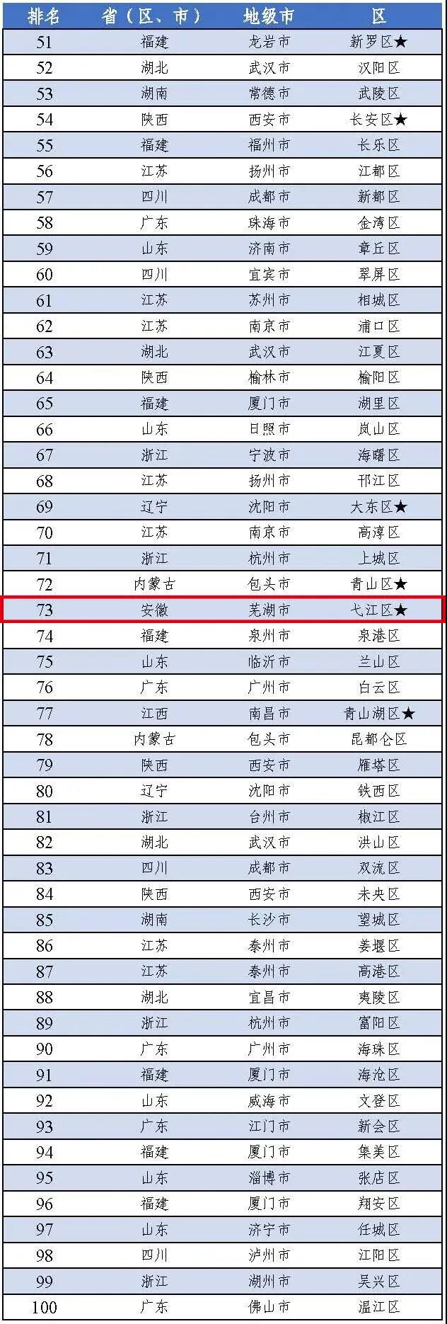 此外,安徽芜湖弋江区入选2020年“中国工业百强区”,排在第73位。