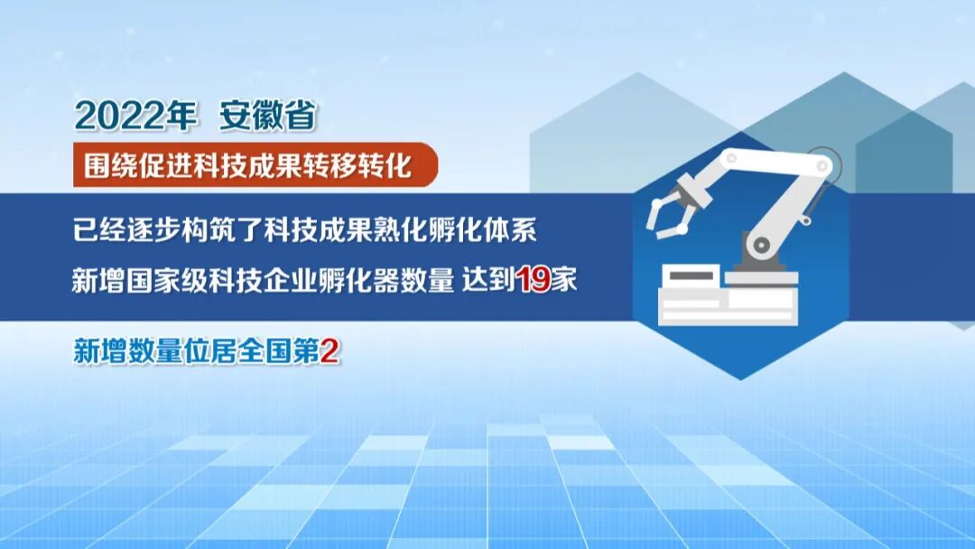 过去一年,围绕促进科技成果转移转化,安徽已经逐步构筑了科技成果熟化孵化体系,全年全省新增国家级科技企业孵化器数量再创新高,达到19家,新增数量位居全国第二。通过不断加大高质量科技成果供给,强化重大创新平台建设,深化科技金融融合发展,今年前5个月,全省共登记科技成果近8974项,其中应用技术类成果8935项。