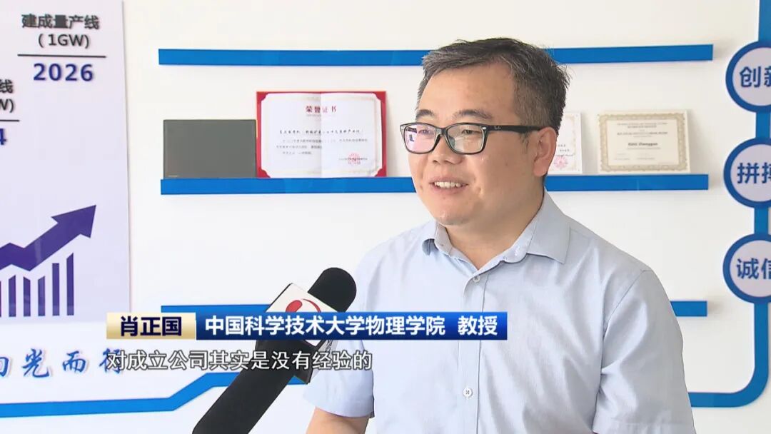 这里位于合肥创新产业园的科邻新能源(合肥)科技有限公司,我手上拿的就是这家企业自主研发的钙钛矿光伏组件,它可以直接将太阳能转化为电能,应用在大面积光伏电站,可移动电源等领域。而它的核心技术就源于中科大物理系一个研发团队曾经承担的国家级重点项目。