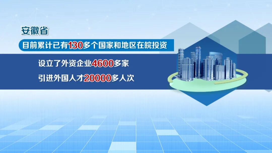 今年上半年,境外世界500强——渣打银行落户安徽自贸试验区合肥片区,德国大众投资10亿欧元在合肥设立本土之外全球最大的大众汽车科创中心,美国康宁、法国圣戈班等一批存量企业持续扩大在皖投资,目前累计已有130多个国家和地区在皖投资,全省设立了外资企业4600多家,引进外国人才2万多人次。