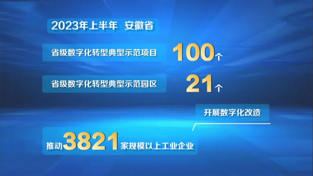 今年上半年,安徽共认定省级数字化转型典型示范项目100个、示范园区21个,推动3821家规模以上工业企业开展数字化改造。
