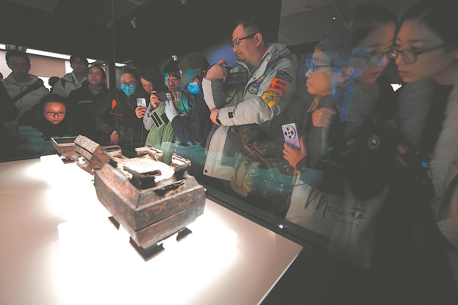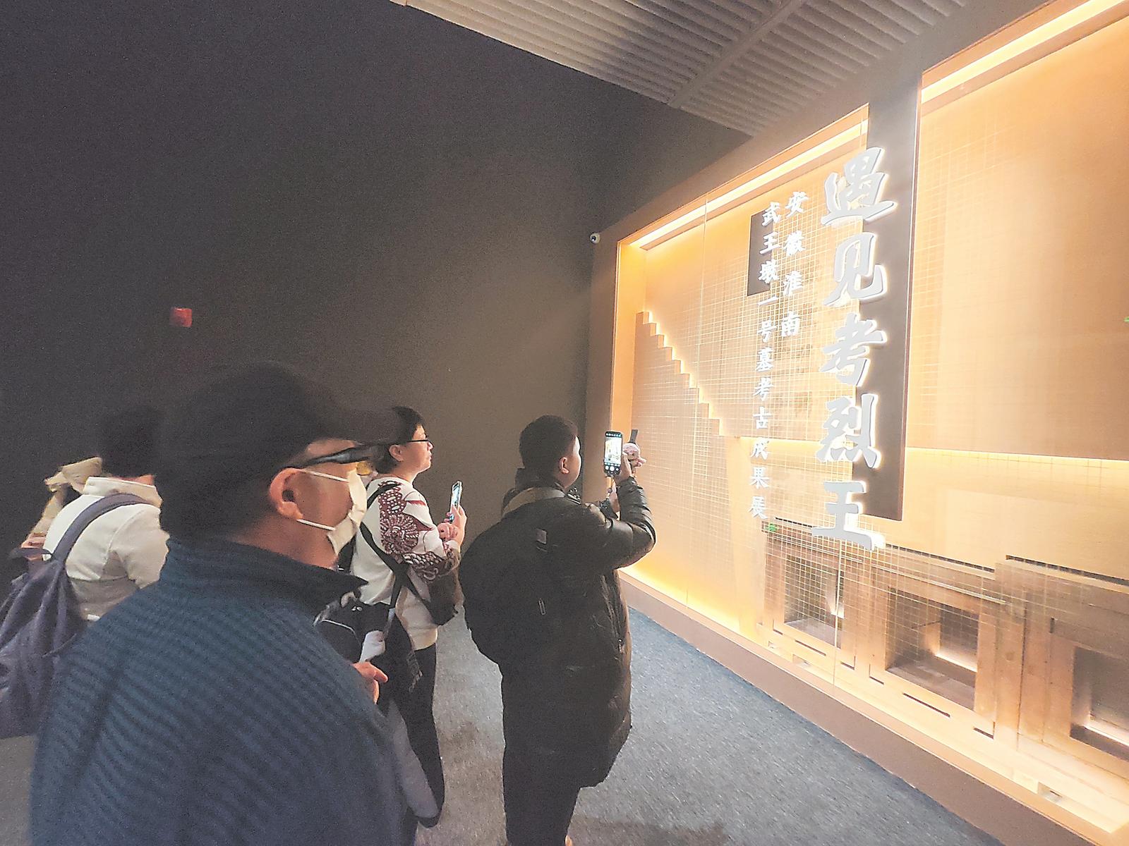 游客在中国国家博物馆参观安徽淮南武王墩一号墓考古成果展。
