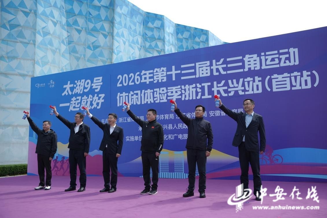 中安在线、中安新闻客户端讯 4月18日,2026年第十三届长三角运动休闲体验季(以下简称“体验季”)新闻发布会在浙江省湖州市长兴县举行,来自浙江、上海、江苏、安徽三省一市的体育部门领导、体育产业投资机构和旅行社负责人、媒体记者、运动休闲爱好者等200余人齐聚太湖之畔,共同见证体验季首站在浙江长兴启动。发布会上,三省一市联合发布今年体验季各站安排,邀请全国的运动休闲爱好者“跟着体验季 酷玩长三角”。